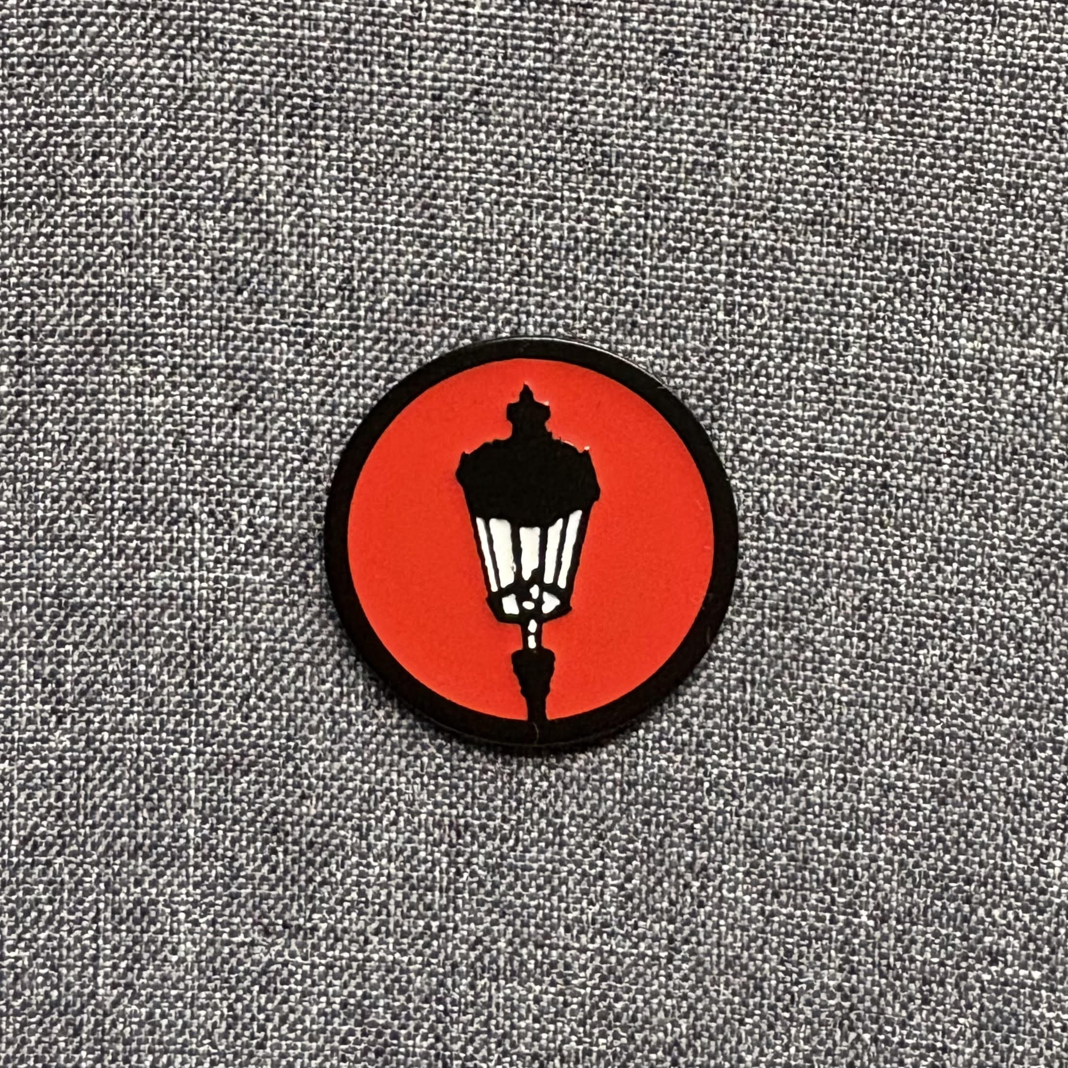 1" round enamel lapel pin with military clutch back attachment, featuring a matte black border